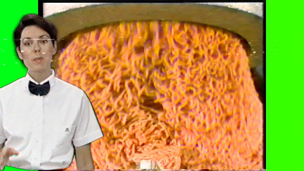 A stack of dusty VHS tapes with training films opens the view to the world of management and precisely timed processes in Mc Donald’s restaurants. From their logic of repetition, rhythm and motivational rhetoric, Gregor Pfeffer and Thadeusz Tischbein developed an over-the-top, satirical parody of the world of work between two burger halves.
